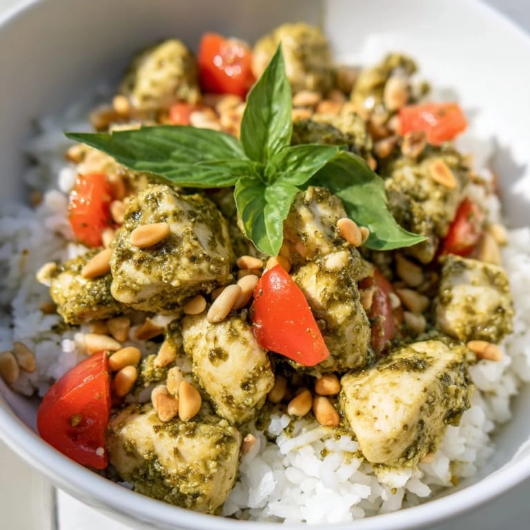 Pin It My friend texted me a photo of her lunch one Thursday afternoon, just a simple bowl with chicken, rice, and something green. When I asked what it was, she said she'd thrown together whatever was in her fridge and it turned out better than half the recipes she'd planned that week. That offhand comment stuck with me, and the next evening I found myself standing in front of my pantry with leftover rice, a jar of pesto, and chicken breasts I needed to use. What came together in less than half an hour became one of those meals I now make without thinking, the kind that feels like a small gift at the end of a long day.