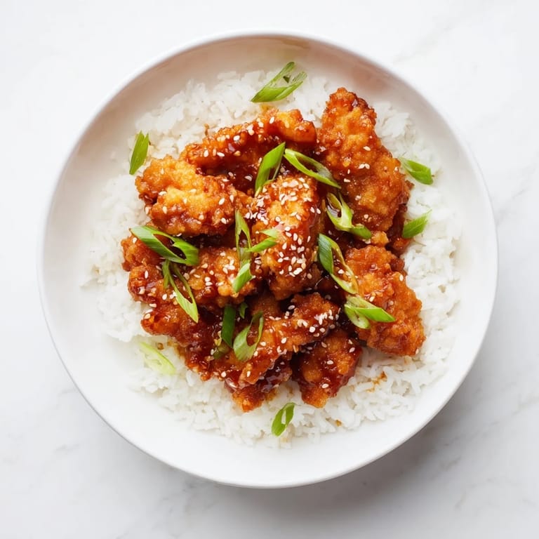 Pin It I discovered General Tso's chicken at a small restaurant tucked between laundromats in my neighborhood, and the first bite—that perfect clash of crispy and tangy-sweet—made me determined to recreate it at home. It took three attempts before I stopped over-thinking the sauce and just let the balance of flavors speak for itself. Now when I make this, my kitchen fills with the kind of smell that brings people wandering in from other rooms. The sizzle of fried chicken hitting hot oil, the garlic perfuming everything—it's become one of those dishes I make when I want the evening to feel like something special.