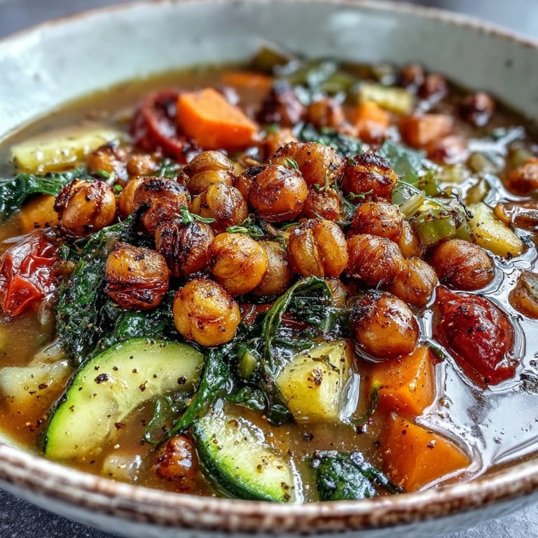 I used to dump the chickpeas straight into the broth and wondered why the texture felt one-dimensional. Roasting them first creates two textures—some that soften into the soup and some that stay crispy on top—and that contrast is what makes each spoonful interesting. The smoked paprika and cumin get deeper too, almost nutty, when they dry-roast on those chickpeas instead of just floating in liquid.