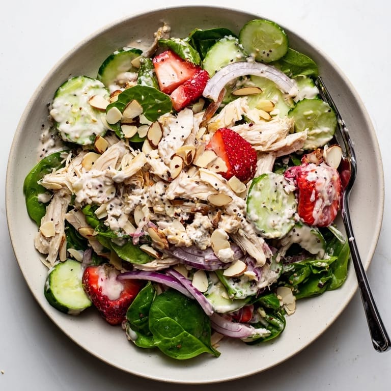 Pin It The first time I made this salad was during a sweltering July afternoon when my air conditioner had died and cooking anything over heat felt like punishment. I found myself craving something substantial but not heavy, something that would make my kitchen feel like a restaurant instead of a sauna. The combination of sweet strawberries and savory chicken felt like a risk at the time, but that first bite convinced me sometimes the most unexpected pairings become the ones you can't live without.