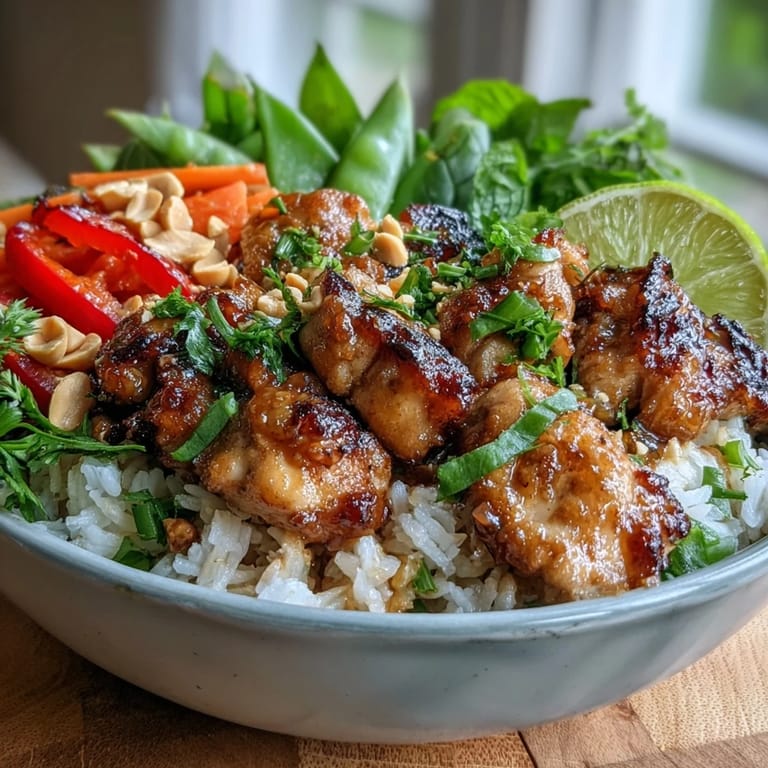 Pin It My friend Marco brought this bowl to a potluck last summer, and I watched people circle back to it three times before the night ended. He swore the secret was letting the coconut rice cool just slightly so it held its shape, and using chicken thighs instead of breasts because they stay juicy even when you're not babying them. The first time I made it at home, I understood why he was so protective of his method—that creamy rice combined with the bright snap of fresh herbs felt like eating something both comforting and alive at the same time.